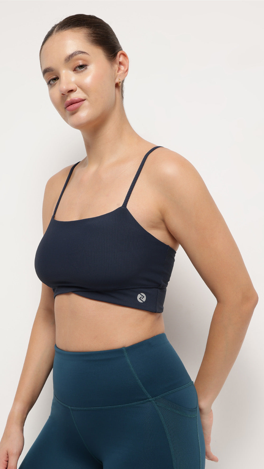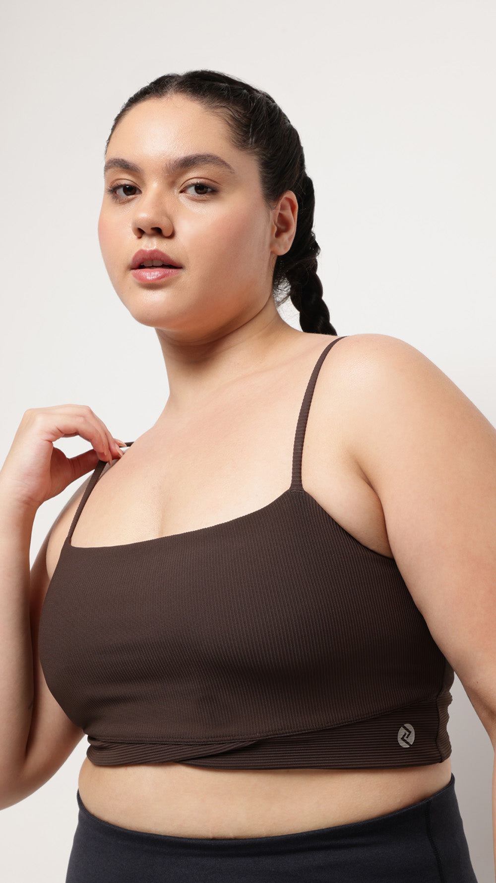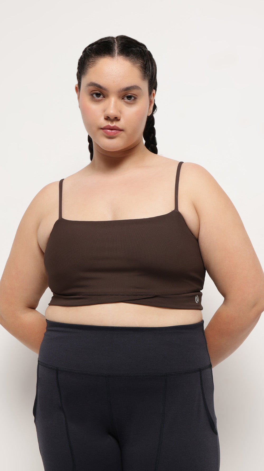 Fluid lines. Refined support.A long-line pilates bralette crafted with soft ribbed fabric, this design offers double-layer coverage with a criss-cross band for a flattering silhouette. Finished with removable pads, this sports bralette combines sophistication with comfort, ideal for both studio and casual wear.Key Feat
