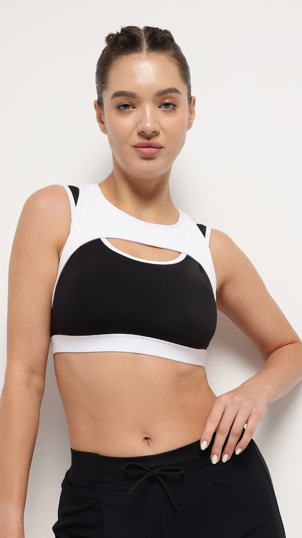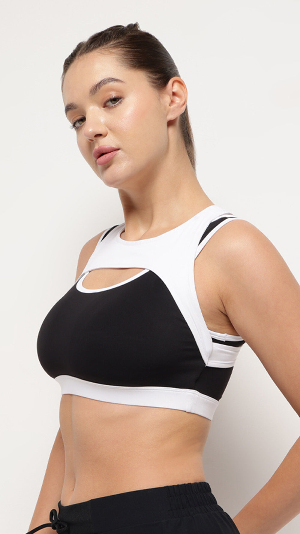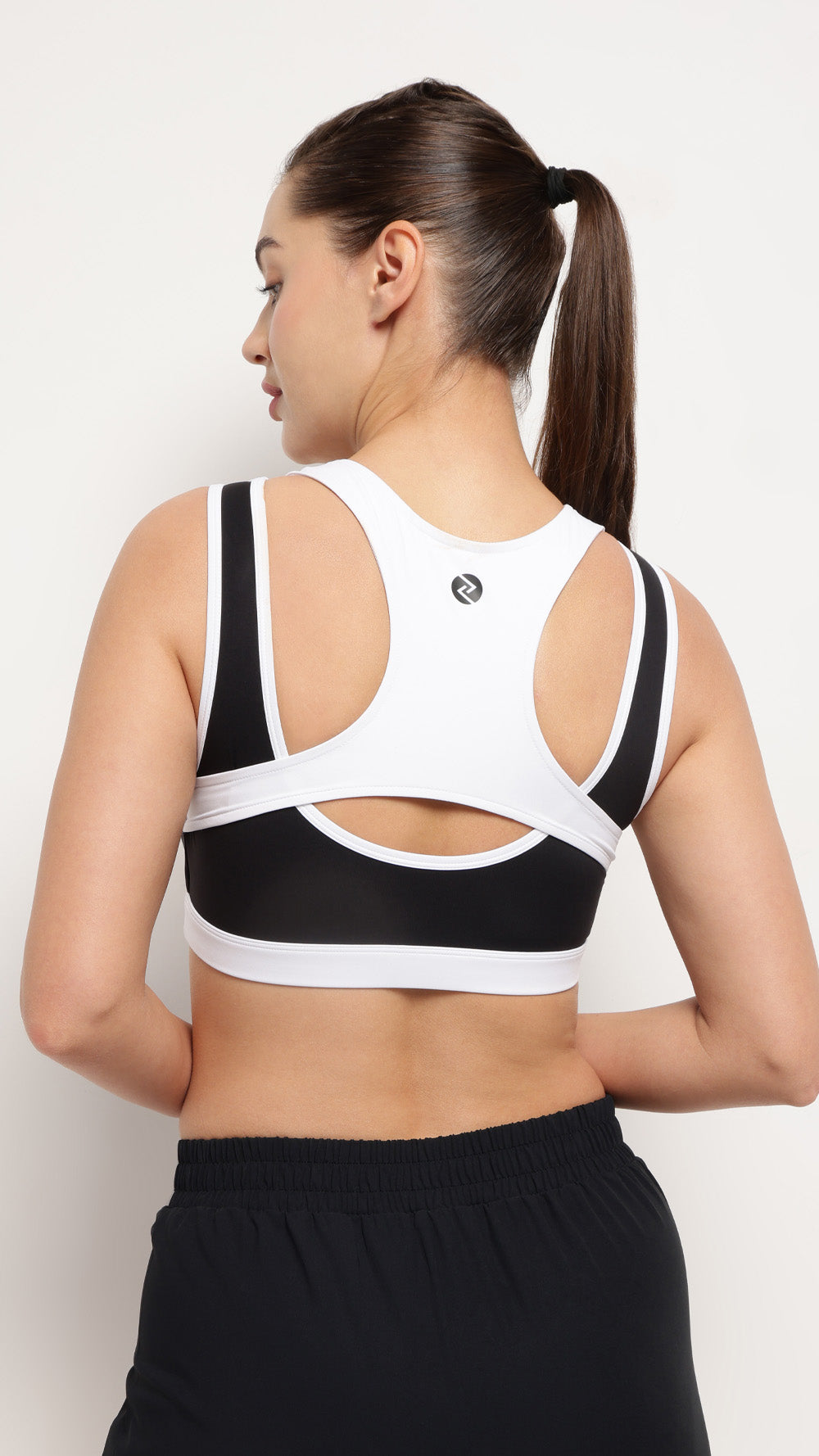 Push further. Stay supported.Engineered for high-intensity moments, this arctic white sports bra delivers exceptional performance with a supportive double-layer design. Wide straps and removable pads ensure comfort that adapts to your needs, while contrast detailing adds a sleek style edge.Key Features: Double Layer Co