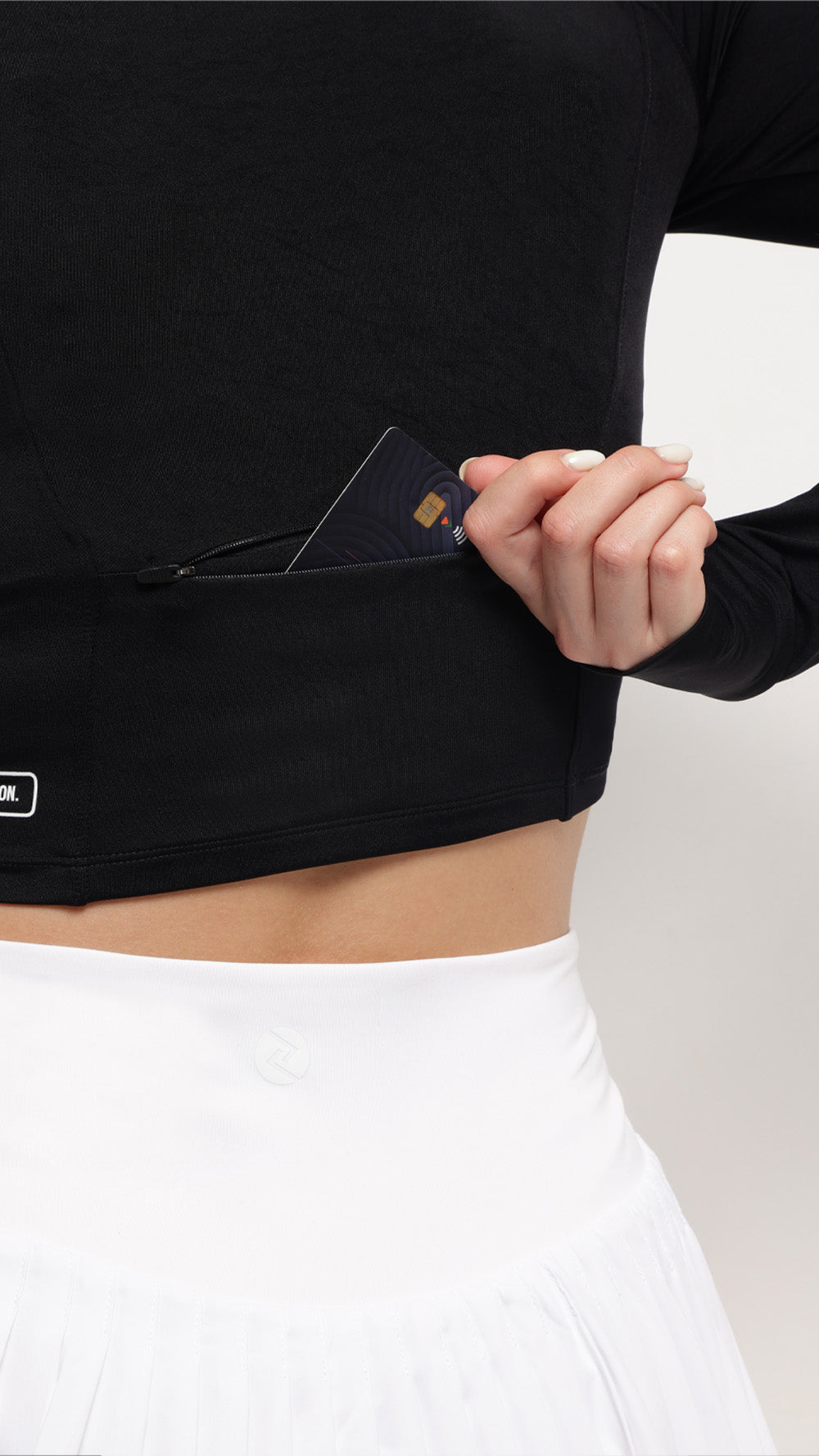 This cropped turtle-neck jacket is designed as a sculpting layer for both on-court and off-duty style. With seamless construction and a slim, body-hugging fit, it moves with you while offering second-skin comfort. Zip it up for sleek coverage or wear it open for a relaxed edge.
